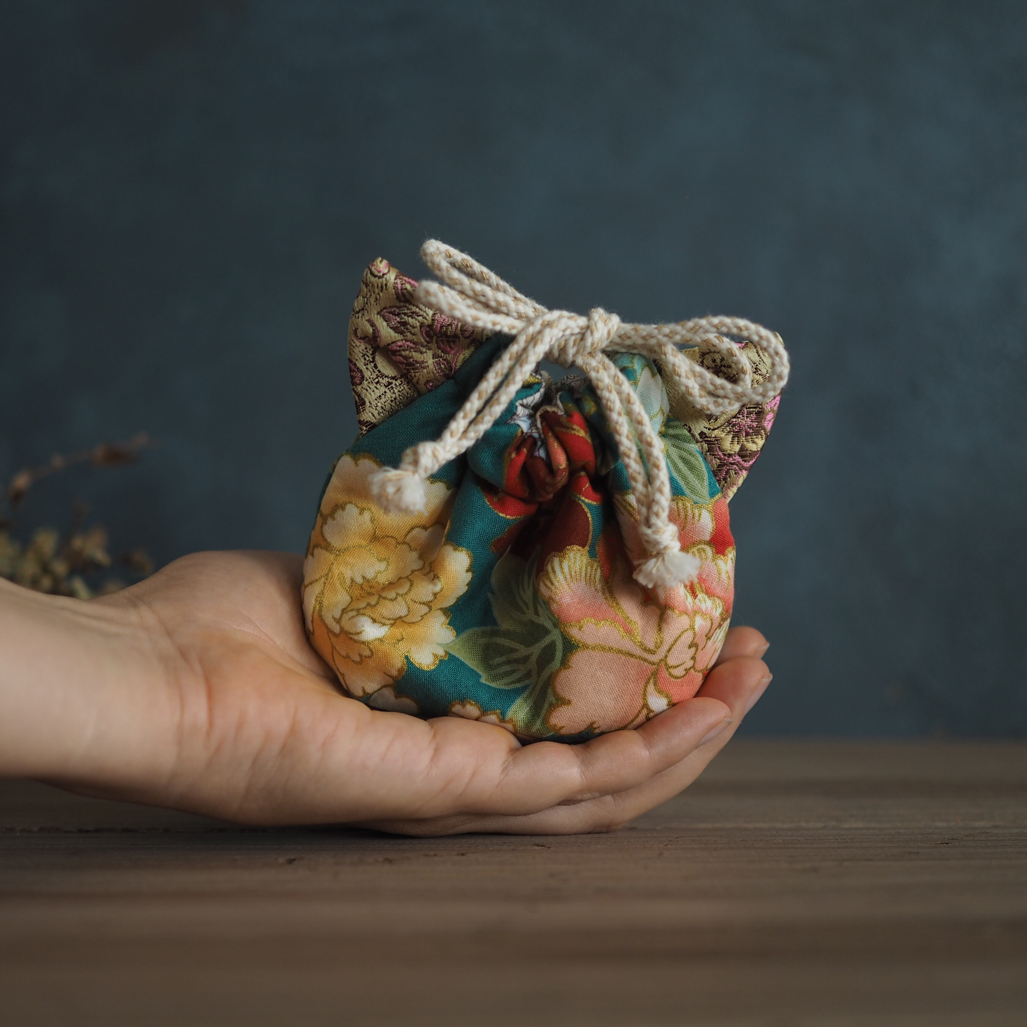 華やかさと落ち着きを兼ね備えた、和モダンな装いの猫耳巾着。
