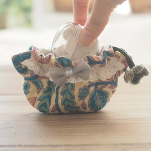 本体と猫耳には、インドならではの鮮やかな色彩と植物模様が魅力のインド柄キルティングコットンを使用。