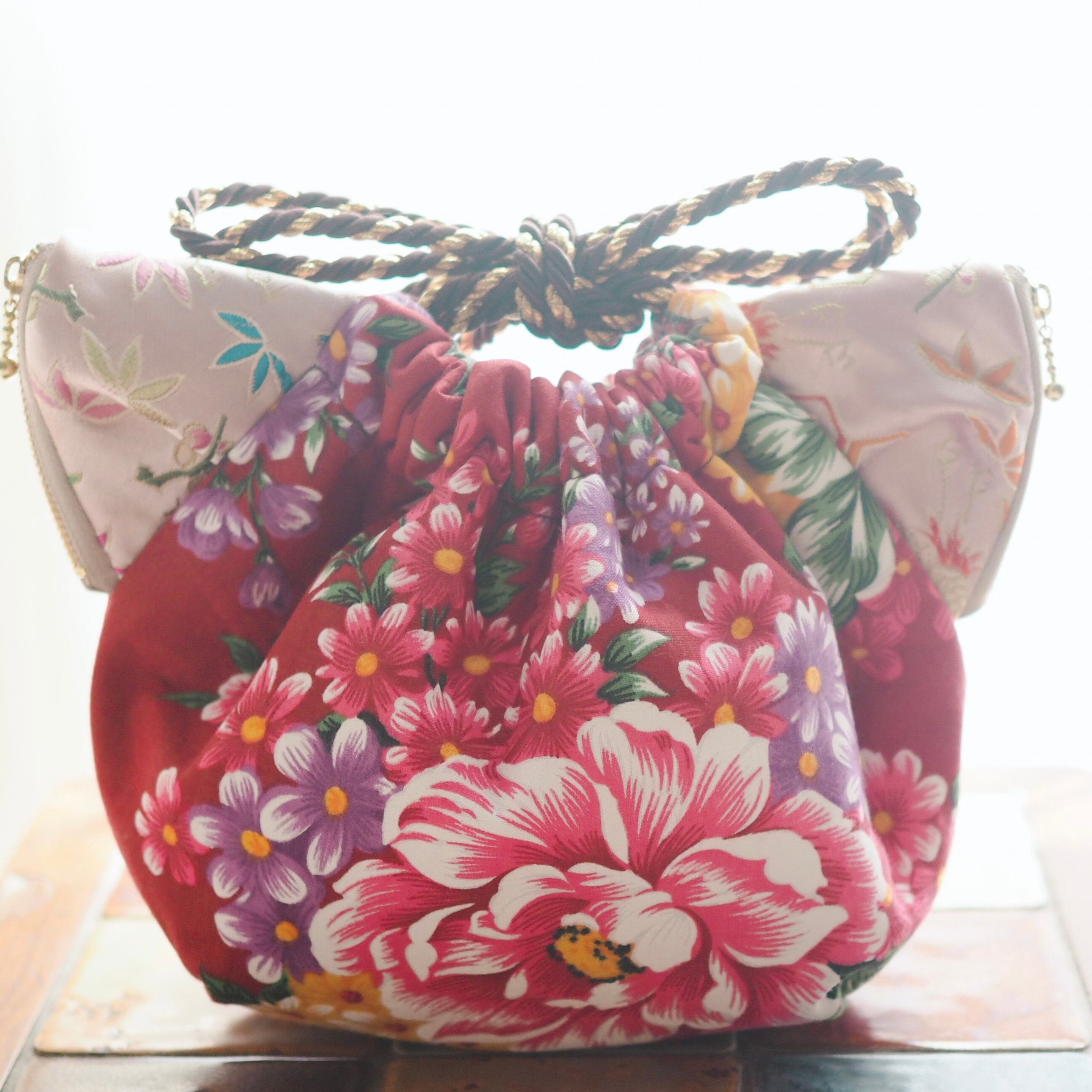 メインには、深紅を基調に大輪の牡丹が咲く花布を使用。
