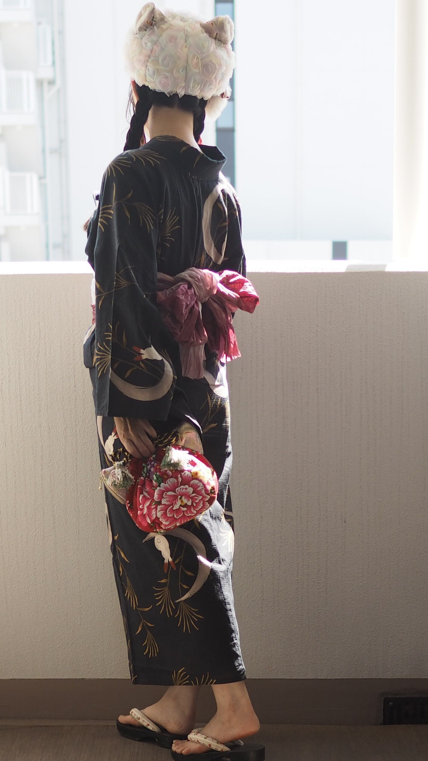 ・蝶々結びのまま手持ちして、和装にも似合う上品なスタイル。