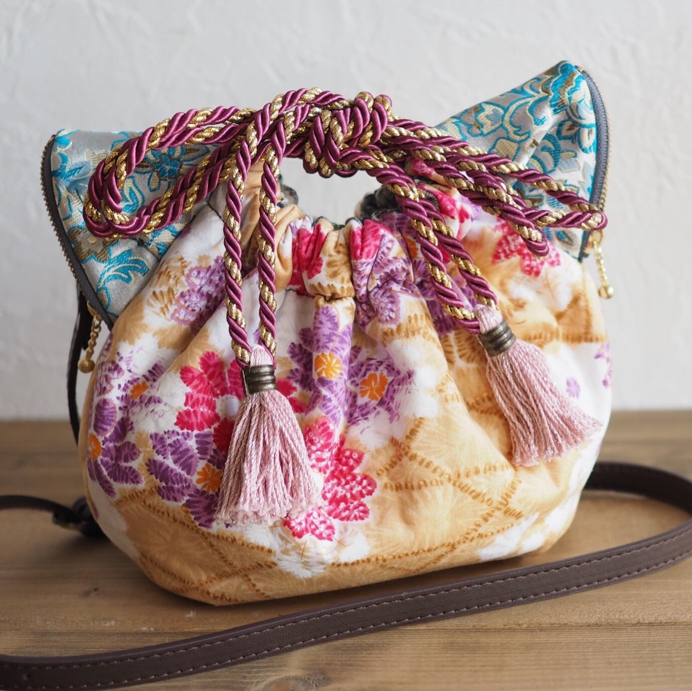 作品名: 台湾花柄猫型巾着ショルダーバッグ
