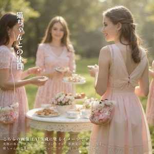 桃の花が舞う空気をとじこめた、猫のかたちのポシェットです。