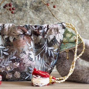 作品名: ゴージャス刺繍レース付き猫型巾着ショルダーバッグ